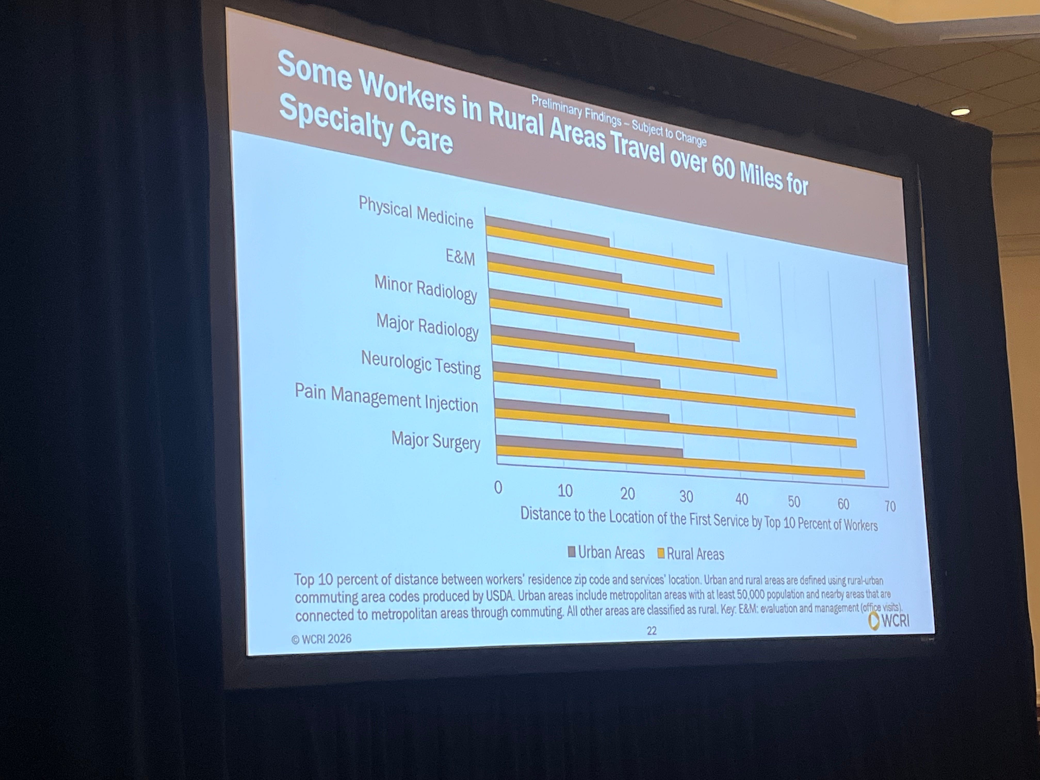 The biggest difference between rural and urban areas is for injured workers seeking specialty care…which implies more complex, costly, and longer duration claims
